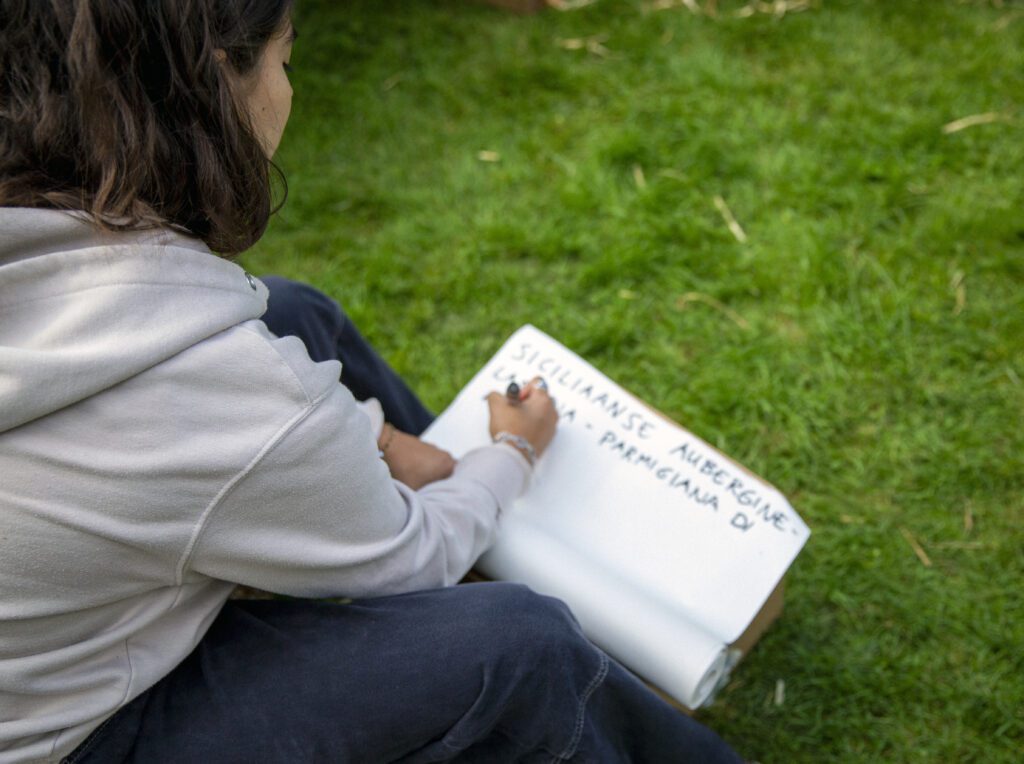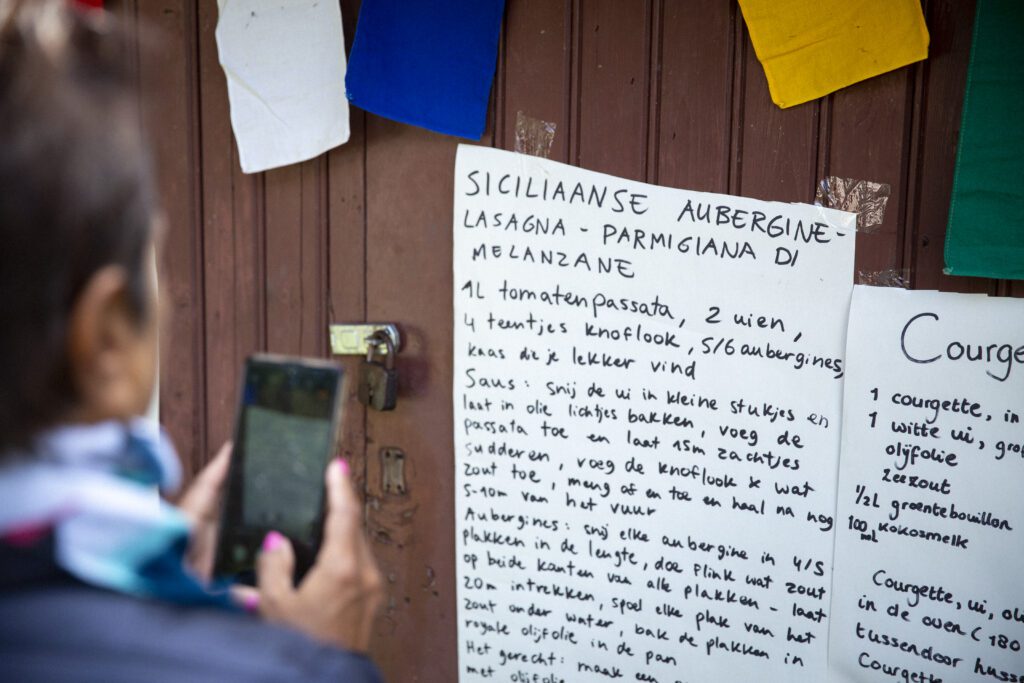 Ook onze bezoekers deden gezellig mee: we gingen met ze in gesprek en vroegen naar hun favoriete gerechten met groenten in de hoofdrol, en of ze het recept wilden delen. Die recepten schreven we op grote vellen papier en plakten we op de boerderijschuur, zodat iedereen ze kon fotograferen en thuis kon uitproberen.