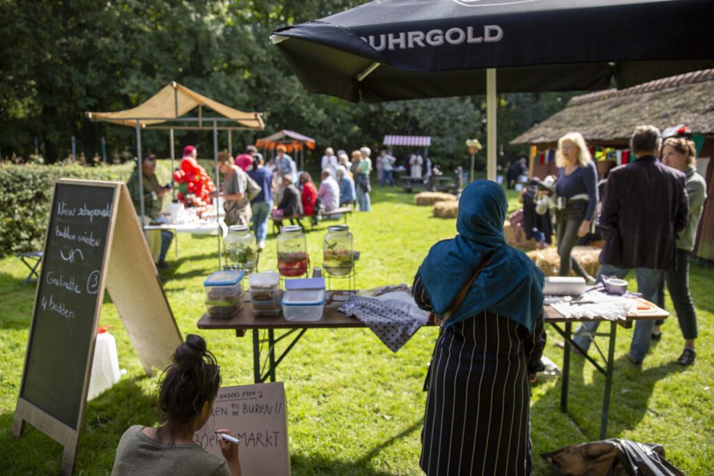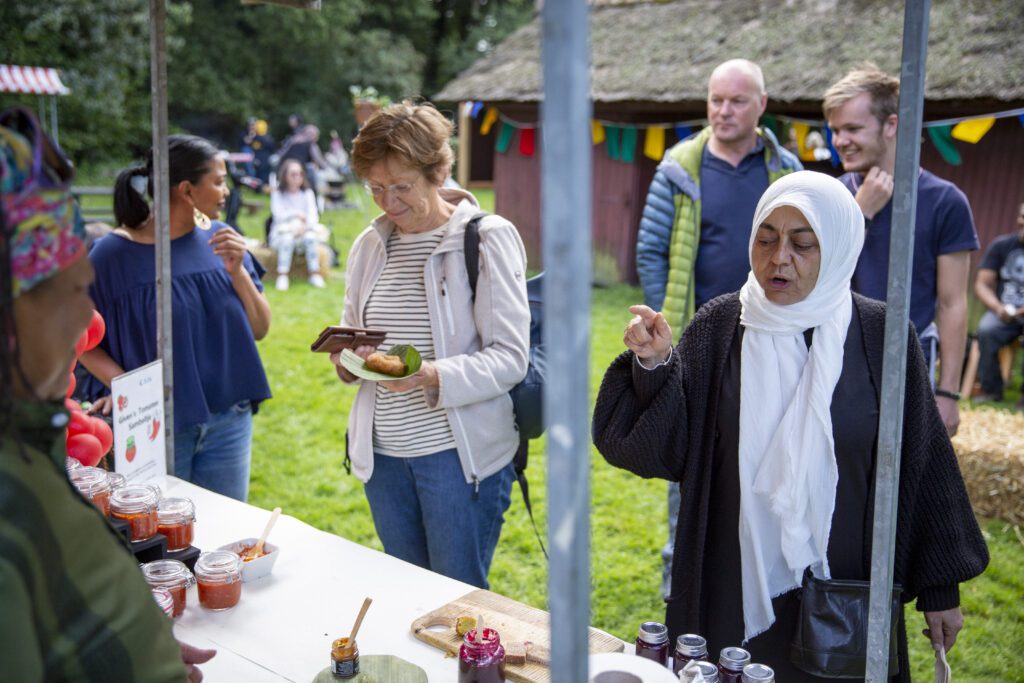 Er waren verschillende kookdemonstraties waarbij we ook lieten zien wat je met voedselrestjes kunt doen. Buurtbewoner Patrick toonde hoe je van koolrabi en courgette uit de tuin van Boerendorp zelf kimchi maakt. Ethlyn van ‘De Kleine Chefs’ maakte van oud brood lekkere broodballetjes gevuld met groenten. En Boerendorp liet zien hoe je van onrijpe groene tomaten, die je aan het einde van het seizoen overhoudt, jam maakt.