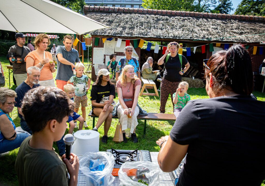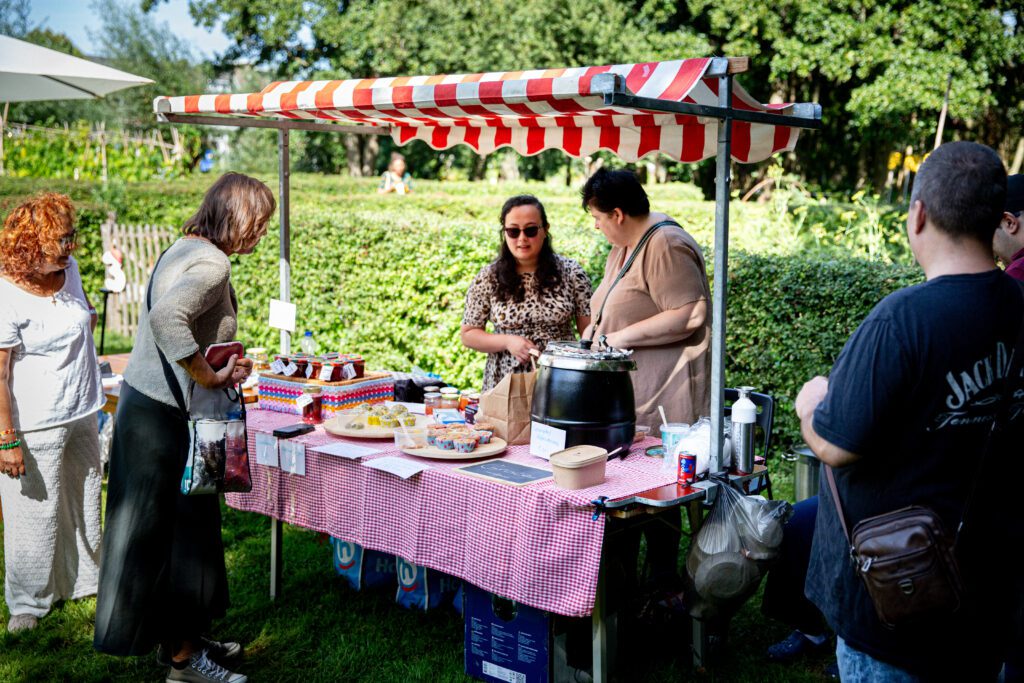 De tuin werd voor één middag omgetoverd tot een levendige markt, waar bezoekers konden rondlopen langs kraampjes, proeven van uiteenlopende gerechten en deelnemen aan diverse activiteiten. Er werden recepten gedeeld, groentehapjes en potjes verkocht, en tijdens de kookdemonstraties werd met grote belangstelling gekeken en geluisterd.