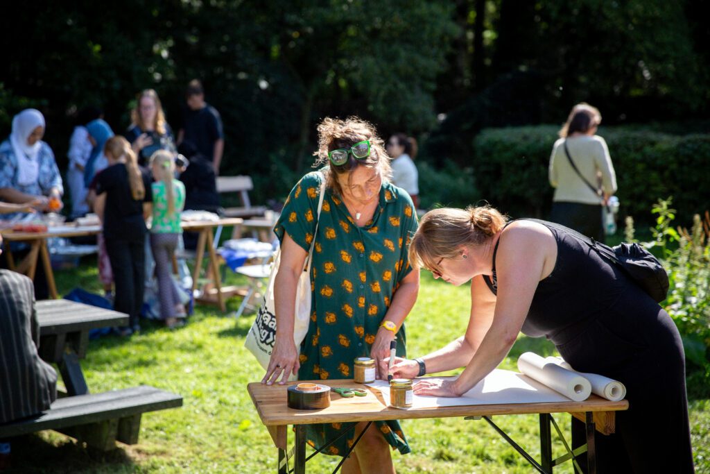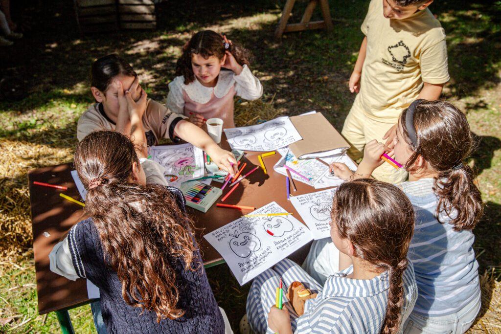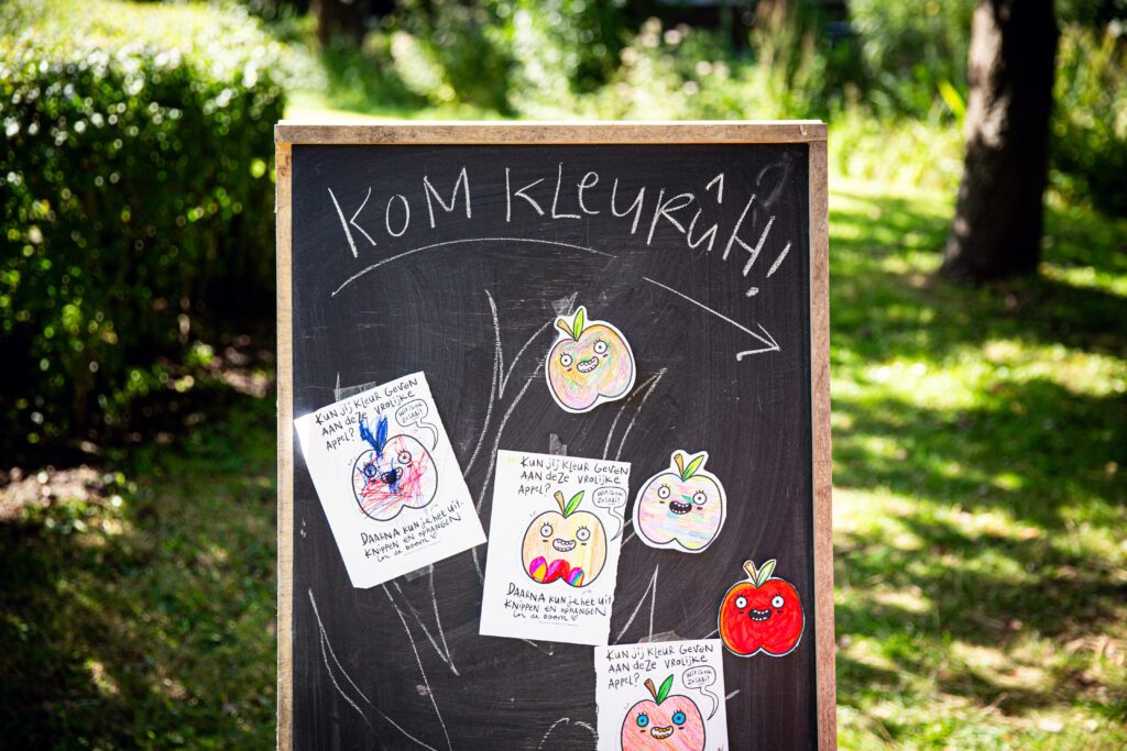 Niet alleen de maag kreeg aandacht: Kinderen leerden keukenkruiden stekken en kregen hun plantjes mee naar huis. Er werden geblinddoekt sapjes geproefd om daarna het fruit te raden. De allerkleinsten doken enthousiast de tuin in, gewapend met schepjes en vergrootglazen, op zoek naar bodemdiertjes. Na alle activiteiten kwamen ze tot rust aan de tekentafel – het inkleuren van appels bleek favoriet. Zelfs oudere bezoekers schoven gezellig aan voor een kleurmomentje.
